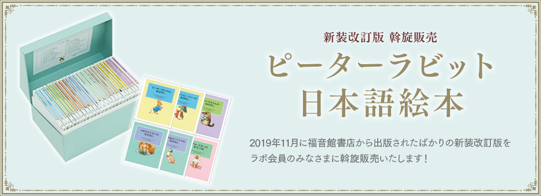 今夏,発刊されるラボ・ライブラリーSK35『ピーターラビット』に収録される6作品のラボ・オリジナルセット。※ 本セットは「日本語絵本(福音館書店)」ですが,今夏登場する新刊ライブラリーSK35『ピーターラビット』は,ラボオリジナルデザインの,「英語の絵本」です。今回の「ラボ・ライブラリー収録6冊セット」と「SK35『ピーターラビット』」では,言語も装丁も異なりますのでご注意ください。